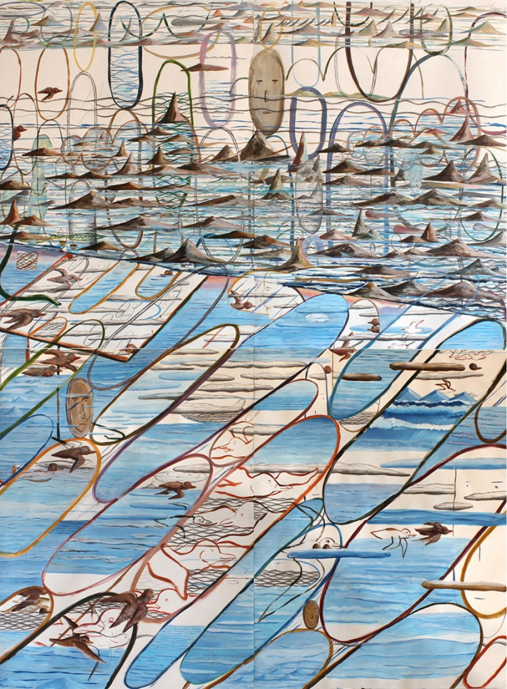 Dan Zhu p19-169 / The train in the rain / 2016 / acrylic, watercolour and gouache on 8 sheets of paper / 290 x 200 cm / provenance: the artist / pk