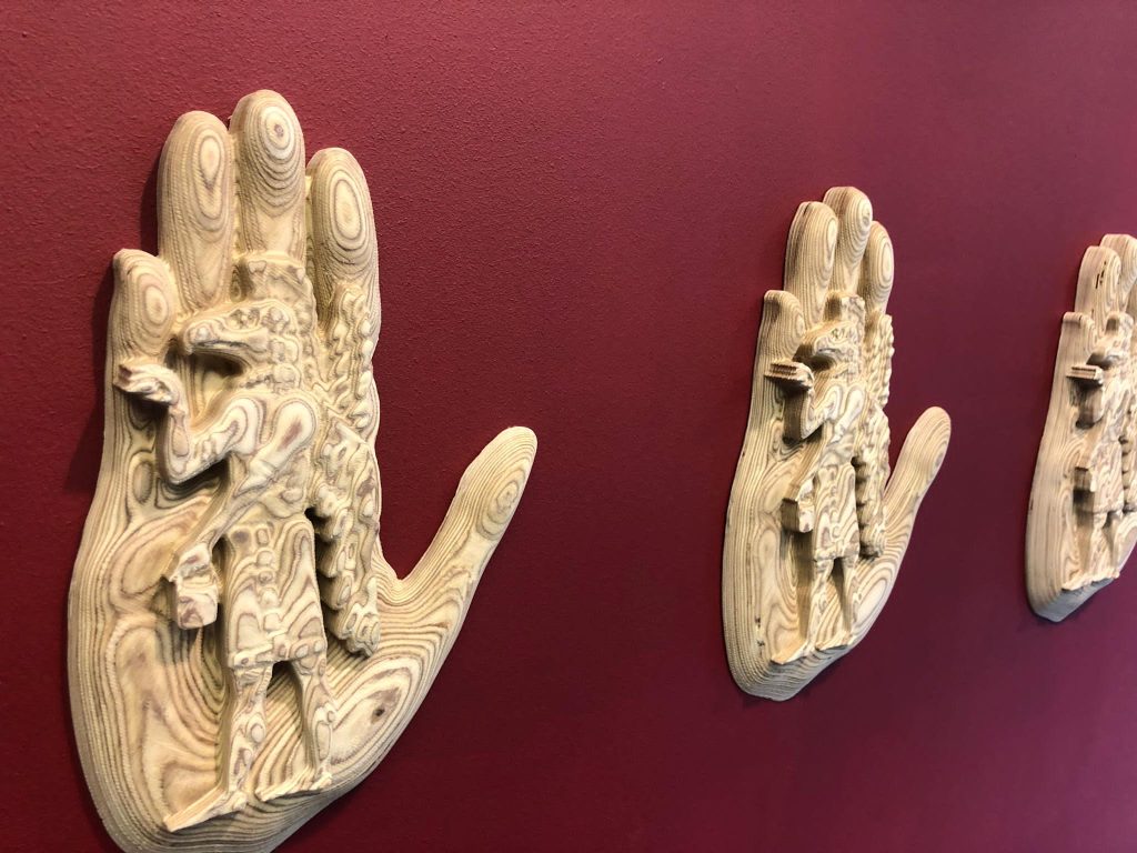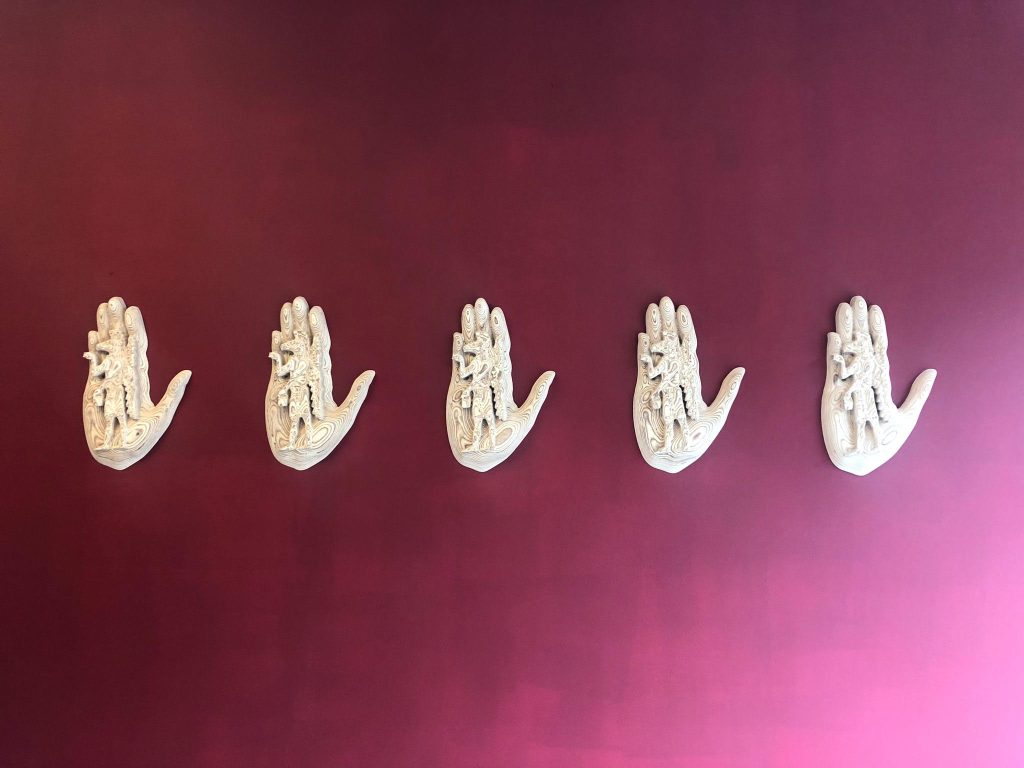 p23-206 / A New Sage (Apkallu) / 2023 / beech multiplex / 38 x 25 x 4 cm / 5 edition numbers bought as one installation / #4, #9, #11, #13 and #14 out of an edition of 25 / provenance: Rijksakademie, The Venice Editions fundraising effort at the Open Studios 2023 / pk