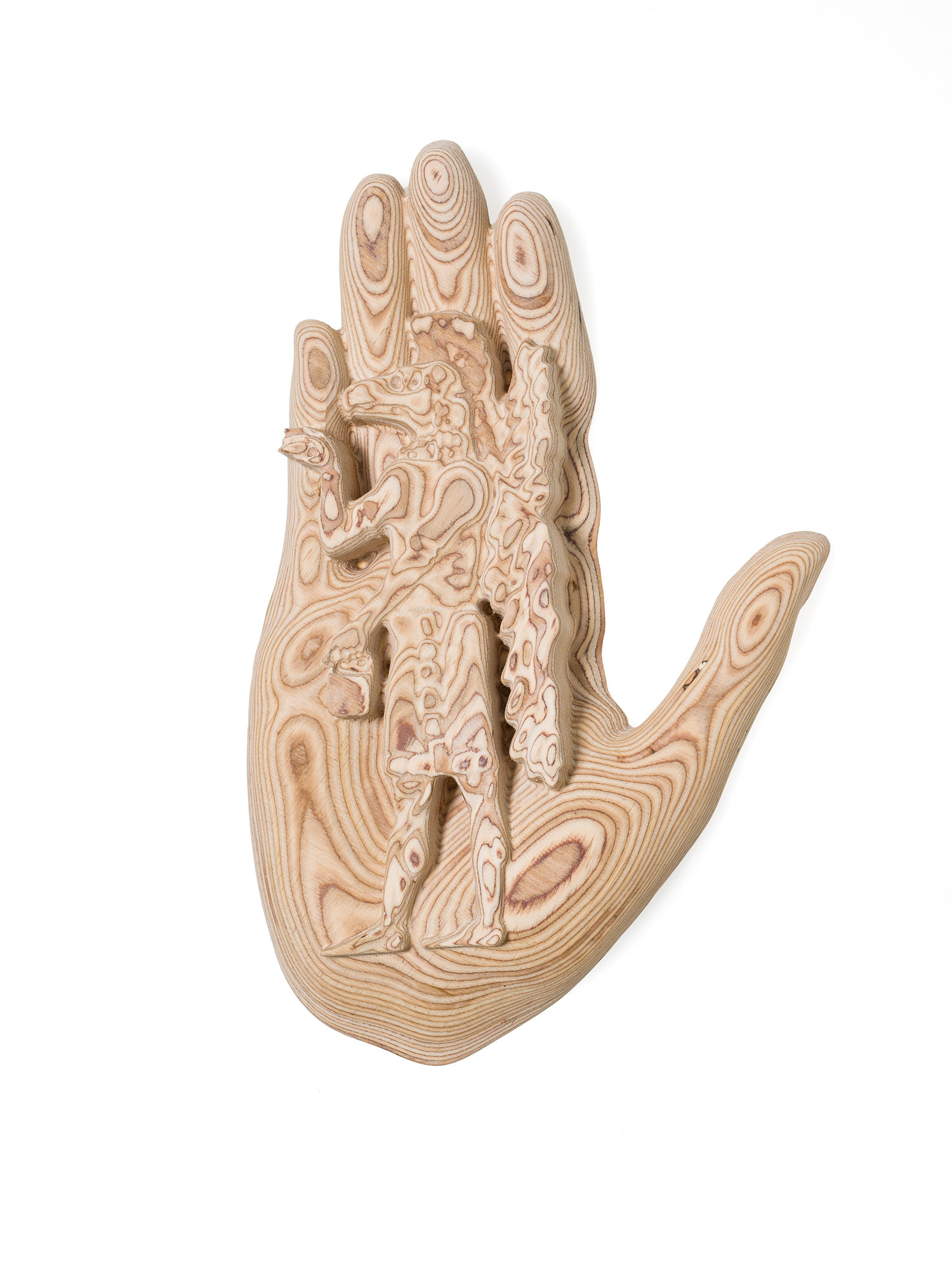 p23-206 / A New Sage (Apkallu) / 2023 / beech multiplex / 38 x 25 x 4 cm / 5 edition numbers bought as one installation / #4, #9, #11, #13 and #14 out of an edition of 25 / provenance: Rijksakademie, The Venice Editions fundraising effort at the Open Studios 2023 / pk