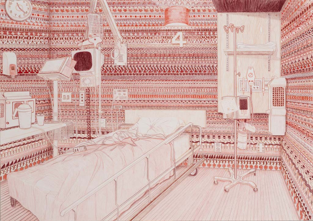 Mike Rogers p08-054 / Recovery Room / 2008 / pencil on paper / 36 x 51 cm / provenance: Cosar HTM, Düsseldorf / pk p08-055 / Showers / 2008 / pencil on paper / 36 x 51 cm / provenance: Cosar HTM, Düsseldorf / pk