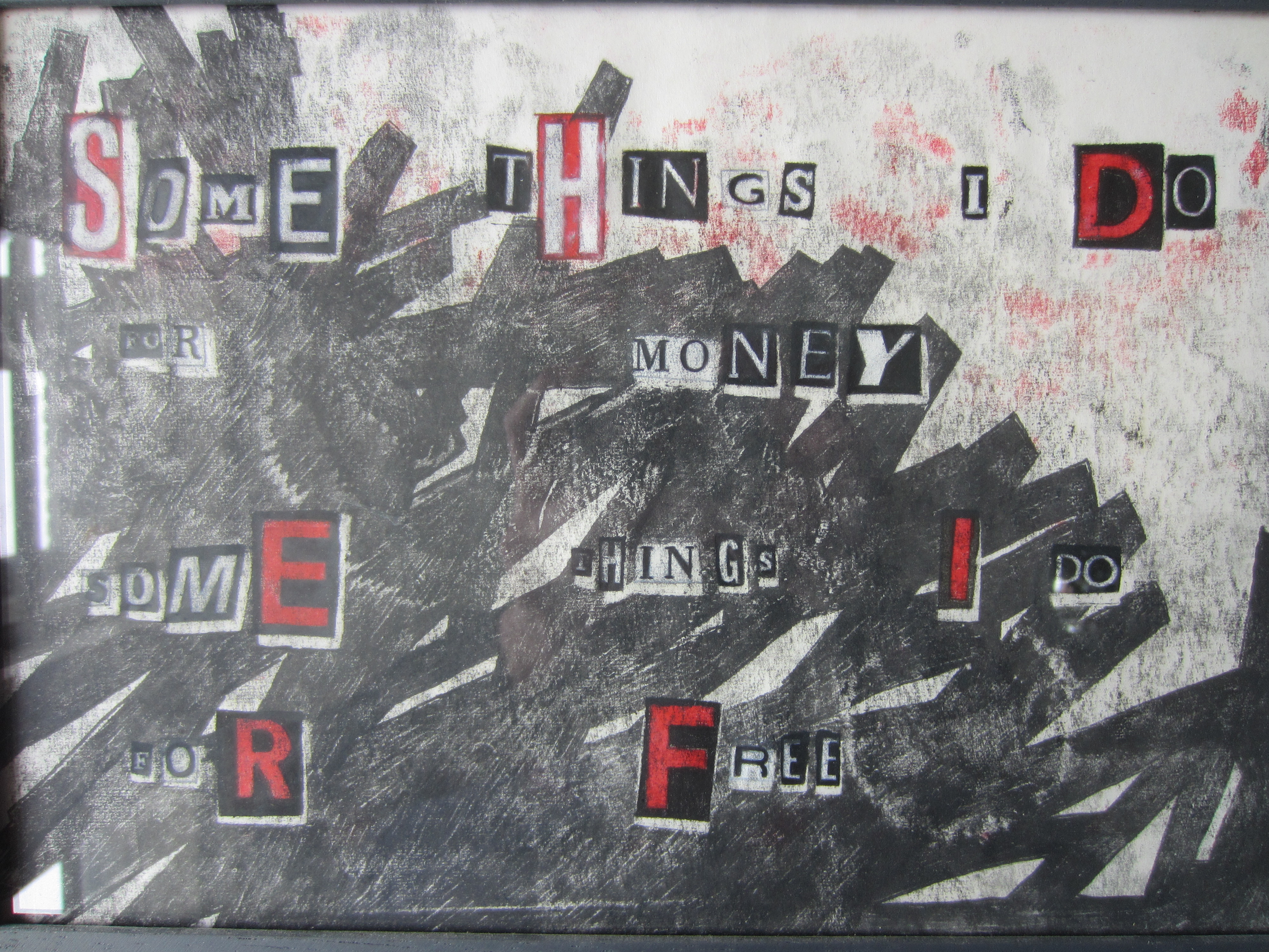 p08-062 / Wovon wir reden, wenn wir von Liebe reden – Some things I do for money, some things I do for free / 2008 /mixed media on paper / 21 x 29,7 cm / provenance: galerie Gabriel Rolt, Amsterdam / exhibited at the gallery, oct-nov 2008 / svt