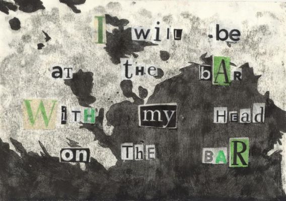 p08-061 / Wovon wir reden, wenn wir von Liebe reden – I will be at the bar with my head on the bar / 2008 / mixed media on paper / 21 x 29,7 cm / provenance: galerie Gabriel Rolt, Amsterdam / exhibited at the gallery, oct-nov 2008 / svt