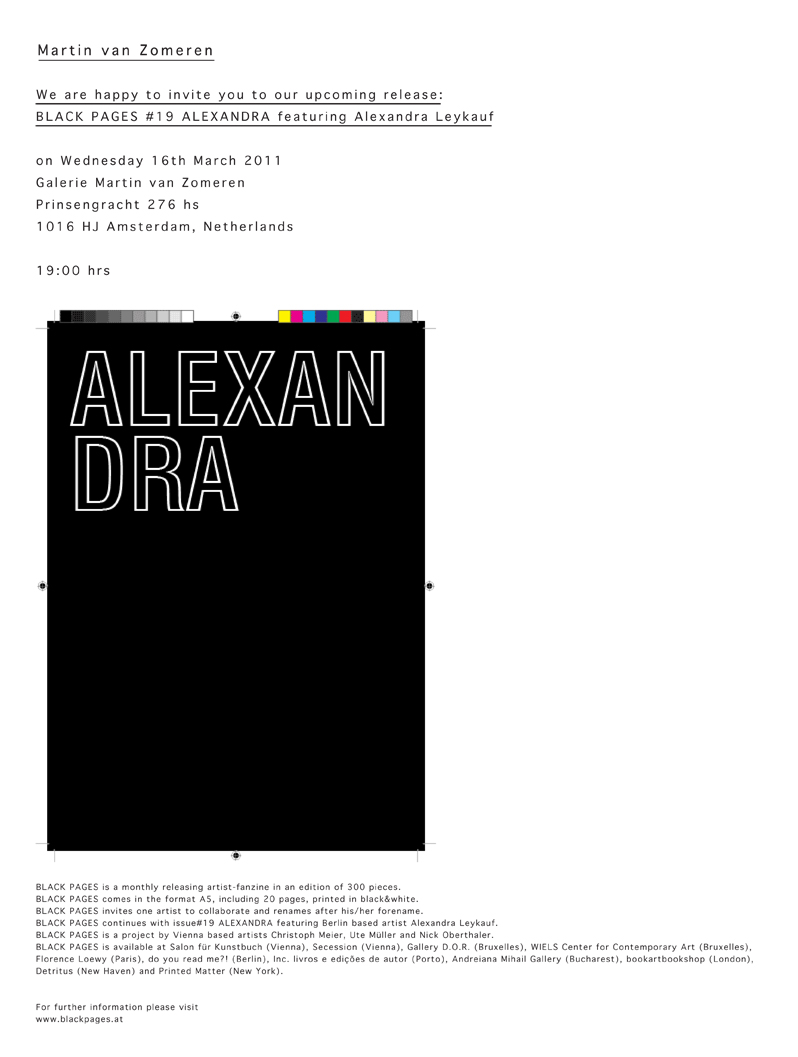 - Black Pages #19 – ALEXANDRA / 2011 / in an edition van 300 / a project van Nick Oberthaler / pk