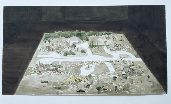 p06-001 / Indoor Tornado / 2003 / aquarel en acrylverf op papier / 45 x 76 cm / provenance: this painting is the first acquisition of the plancius art collection, acquired january 2006 at galerie Juliette Jongma, Amsterdam / svt