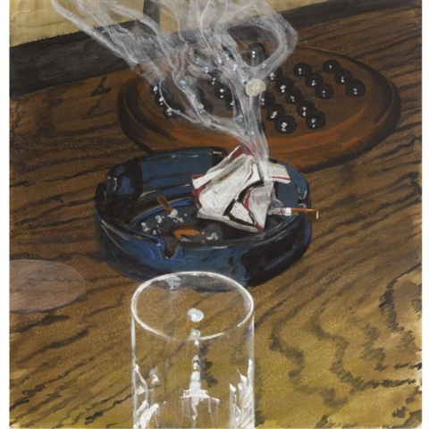 p10-085 / Glass Ashtray Game / 2006 / aquarel en gouache on paper / 76 x 72,5 cm / provenance: ingebracht door de kunstenaar voor de veiling Global Contemporary Artists for Artists. The Rijksakademie Artists Endowment Fund, 1 juni 2010, Sotheby’s, Amsterdam / in exhibition and catalogue of that auction (2010), also shown at the overview solo exhibition in Museum More (2021) / pk